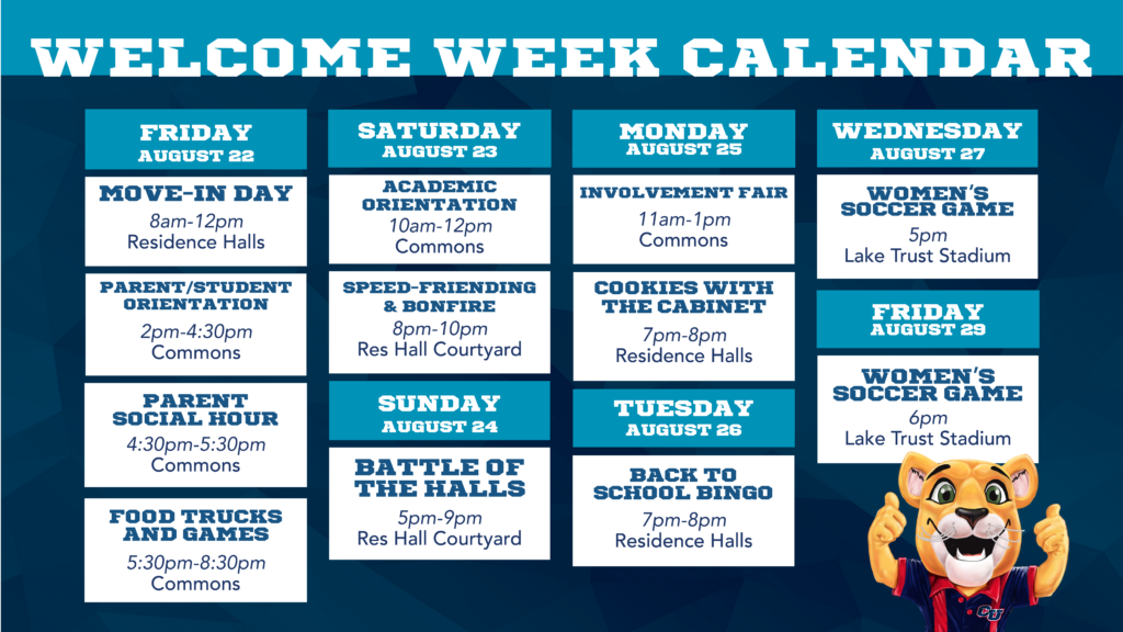 The following morning, an additional Academic Orientation for students only will be held on Saturday, August 23 from 10 AM-12 PM at the Cleary Commons. You will: